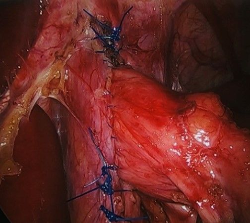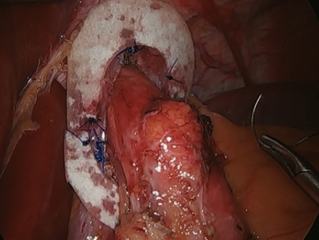 performed laparoscopically through 5 small incisions - less pain, fewer respiratory complications & quicker recovery