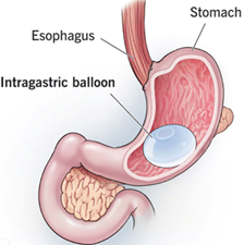 The Intragastric Balloon or Gastric Balloon is a soft balloon placed in the stomach to create early fullness and to slow gastric emptying.